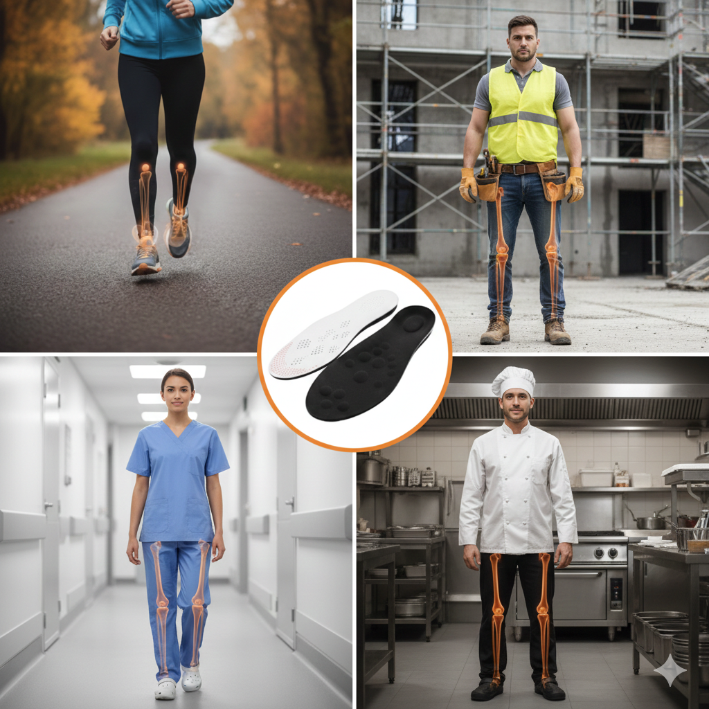 El dolor de rodillas y espalda suele empezar en una mala pisada. Mira cómo nuestras plantillas ergonómicas corrigen tu postura y te devuelven la libertad de moverte sin límites.